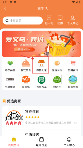 2、在惠生活頁面,點擊零售禮包分類標簽,進入零售禮包商品列表頁面。