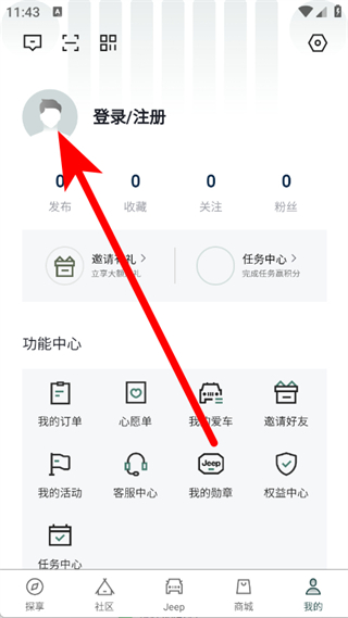 2、在我的頁面,點(diǎn)擊登錄注冊(cè)頭像,進(jìn)入注冊(cè)登錄頁面。