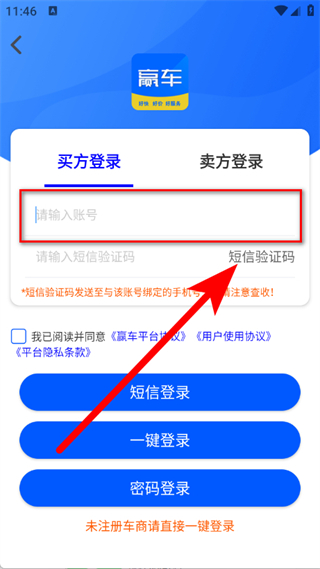 3、在登錄頁(yè)面,輸入賬號(hào)后,點(diǎn)擊短信驗(yàn)證碼。