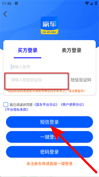 4、在輸入框中,輸入驗(yàn)證碼,勾選協(xié)議后,點(diǎn)擊短信登錄按鈕,完成登錄。