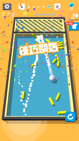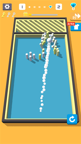 3、持續(xù)彈射,撞擊更多柱子,包括黃色柱子,擴(kuò)大消除范圍。
