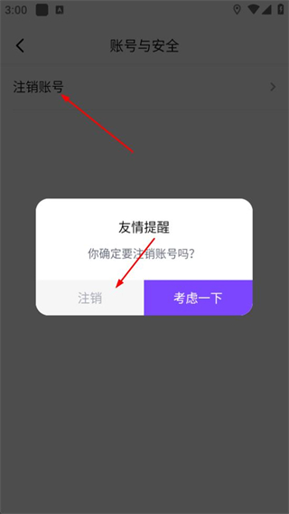 4、在賬號(hào)與安全界面點(diǎn)擊注銷(xiāo)賬號(hào),在友情提醒彈窗中點(diǎn)擊注銷(xiāo),完成賬號(hào)注銷(xiāo)操作。