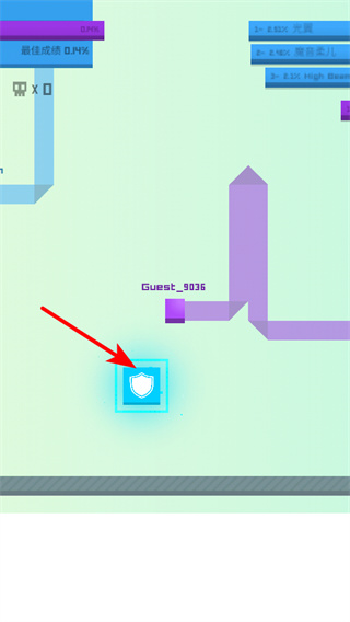 2、游戲中遇到藍(lán)色盾牌道具時(shí),操控角色獲取該道具,可獲得防御增益,提升角色在碰撞中的生存能力。