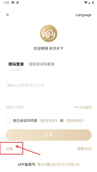 3、在登錄界面,點擊注冊選項,進入個人注冊頁面。