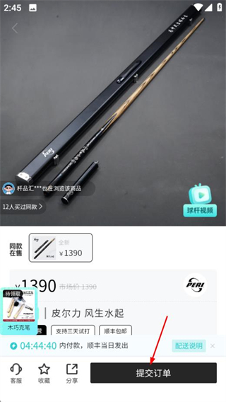 3、在球桿詳情頁面,點(diǎn)擊該款在售按鈕,進(jìn)入商品購(gòu)買頁面。
