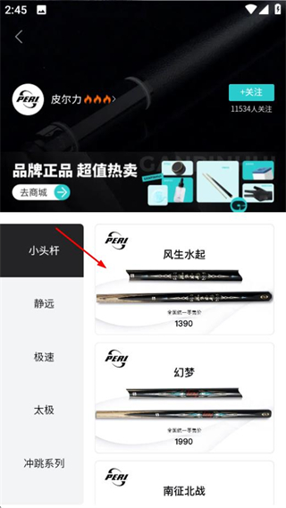2、在品牌詳情頁面,選擇要購(gòu)買的球桿,如風(fēng)生水起,進(jìn)入球桿詳情頁面。