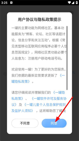 1、在用戶協(xié)議與隱私政策提示彈窗中,點(diǎn)擊同意,進(jìn)入頁面。