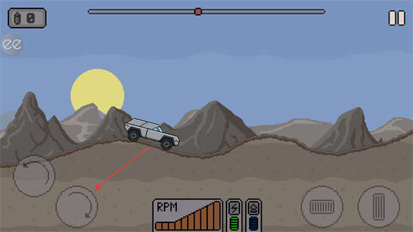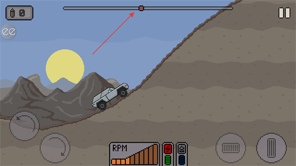 2、駕駛賽車爬坡,注意上方進(jìn)度條,推進(jìn)游戲進(jìn)程。