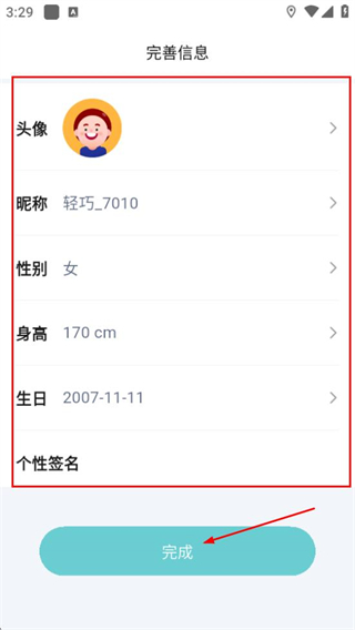 3、在完善信息界面填寫信息,點擊完成,完成注冊流程。