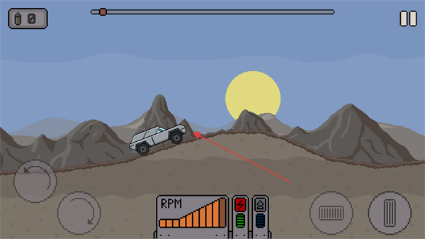 2、駕駛賽車在山地地形行駛,注意爬坡時(shí)的賽車狀態(tài),控制速度。
