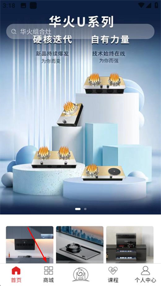 1、在華火首頁(yè),點(diǎn)擊底部商城選項(xiàng),進(jìn)入商城頁(yè)面。