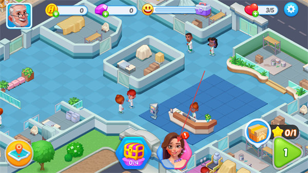 卡通溫馨畫風(fēng)與醫(yī)院主題巧妙融合,既保持了醫(yī)療場景的辨識度,又通過柔和風(fēng)格降低距離感,讓不同年齡段的玩家都能輕松接受,提升整體好感度。