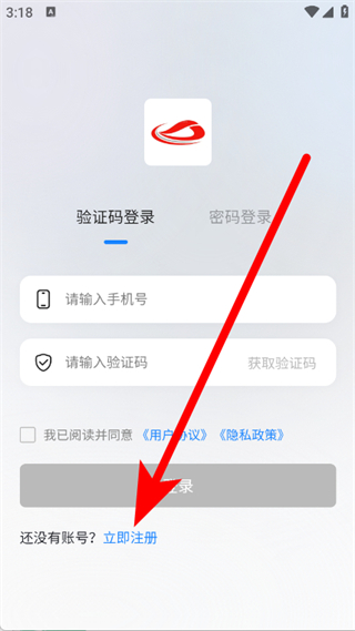 2、在登錄頁面,點擊立即注冊,進入注冊頁面。