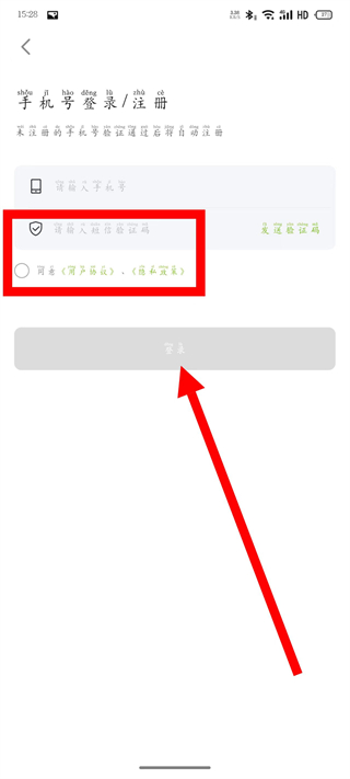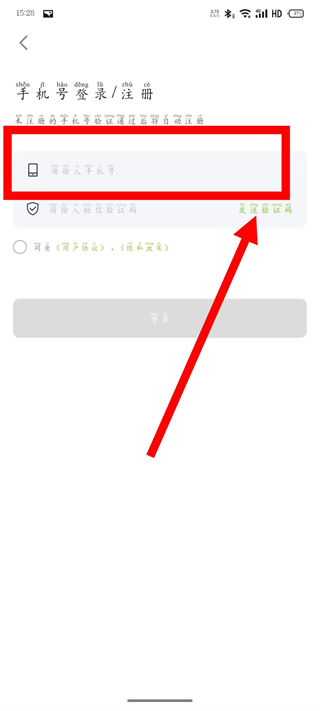 3、在登錄頁面,輸入手機(jī)號后,點擊發(fā)送驗證碼。