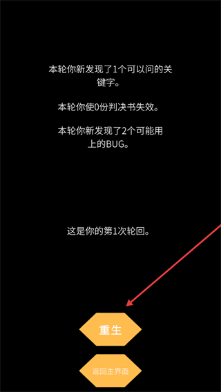 4、當(dāng)輪回結(jié)束時,可點(diǎn)擊重生按鈕開啟新一輪。
