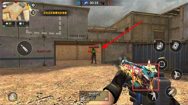 2、發(fā)現(xiàn)敵人后瞄準目標,點擊射擊按鈕開火,需把握好射擊節(jié)奏和準度,盡可能快速淘汰敵人,積累對戰(zhàn)優(yōu)勢。