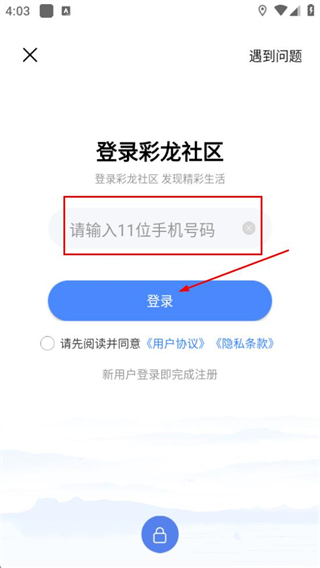 3、在登錄彩龍社區(qū)頁面輸入手機號碼后點擊登錄按鈕。