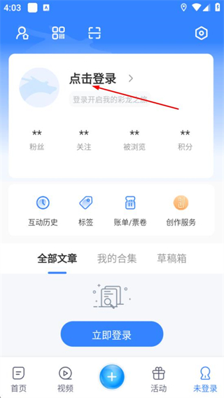 2、在登錄頁面點擊點擊登錄區(qū)域進(jìn)入登錄流程。