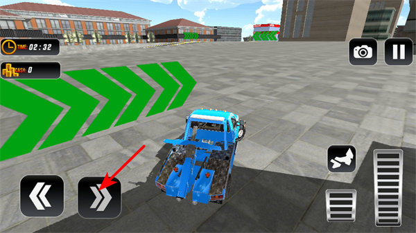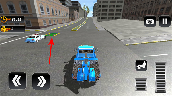 2、游戲中點擊右側(cè)方向按鈕,可操控拖車轉(zhuǎn)向,在城市道路中靈活調(diào)整行駛方向,順利前往任務(wù)地點。
