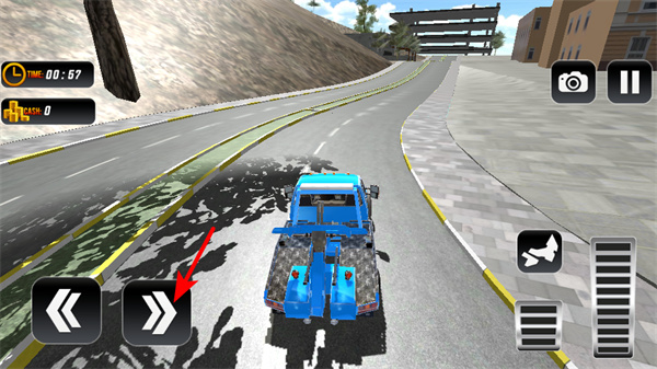 3、在彎道等復(fù)雜路況下,點擊方向按鈕調(diào)整拖車行駛方向,避開道路障礙,保持穩(wěn)定,確保任務(wù)順利推進。