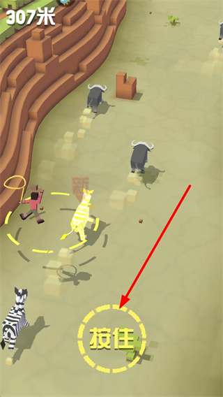 3、奔跑過程中要留意各類障礙物,及時調(diào)整方向避開,若撞到障礙物會掉落動物,盡量延長騎乘時間以獲取更高分數(shù)和獎勵。