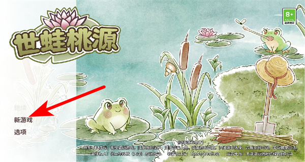 1、進(jìn)入界面后,點(diǎn)擊新游戲開啟世蛙桃源的經(jīng)營(yíng)冒險(xiǎn),這是開啟游戲的關(guān)鍵操作,點(diǎn)擊后即可進(jìn)入游戲世界。