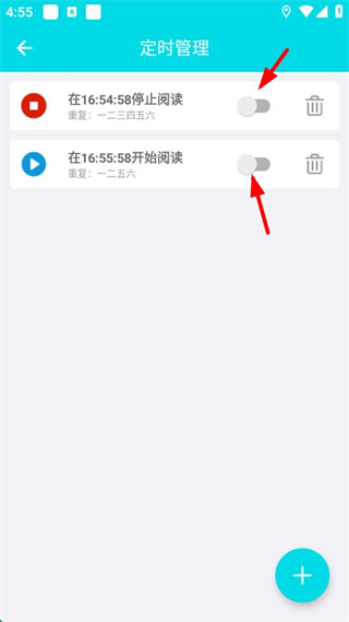 2、進(jìn)入定時(shí)管理可開啟或關(guān)閉定時(shí)停止、開始閱讀的功能。