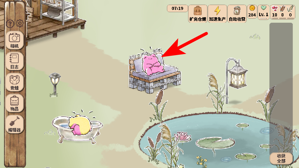 內(nèi)置菜單搭載實(shí)用功能,可直接解鎖稀有青蛙品種、家具玩具與培育資源,跳過繁瑣收集步驟,無需耗費(fèi)大量時間積累,專注于田園布置與青蛙互動的核心樂趣。