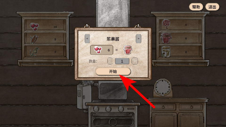 4、在制作的界面,我們需要準(zhǔn)備好材料后點(diǎn)擊開始按鈕,制作相應(yīng)物品,用于投喂青蛙或完成任務(wù)。