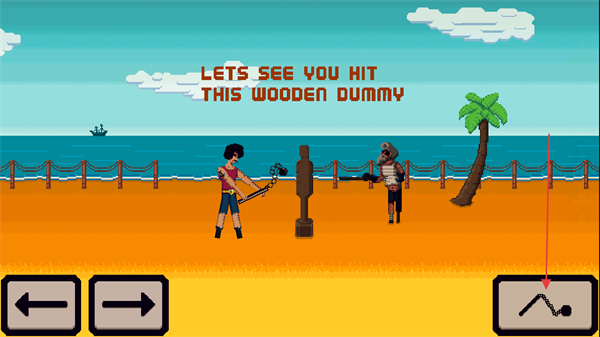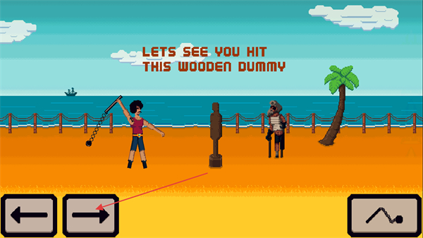 2、在靠近敵人一定距離的時候,點(diǎn)擊右下角揮動流星錘進(jìn)行攻擊。