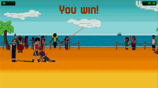 復(fù)古像素風(fēng)搭配直接的對抗玩法,畫面粗糙卻不失張力,掄錘砸飛對手的動作反饋強(qiáng)烈,沒有冗余內(nèi)容,每一次對戰(zhàn)都充滿新鮮感。