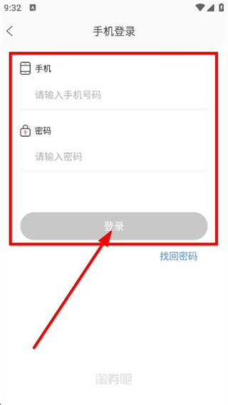 4、在手機(jī)登錄界面,輸入手機(jī)號碼和密碼后點擊登錄,完成登錄操作。