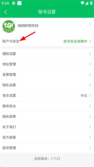3、在賬號設置頁面點擊賬戶與安全進入相關設置。