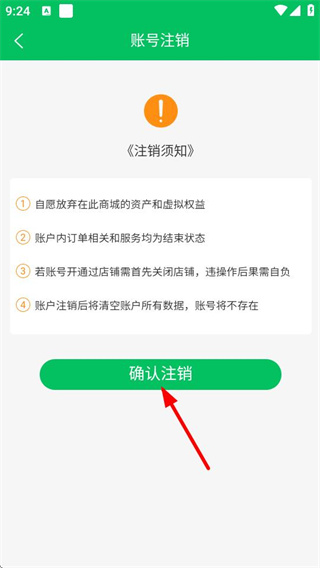 5、在賬號注銷頁面點擊確認注銷按鈕,進入注銷確認環(huán)節(jié)。