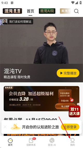 1、在混沌首頁,點擊右下角我的選項,進入登錄頁面。