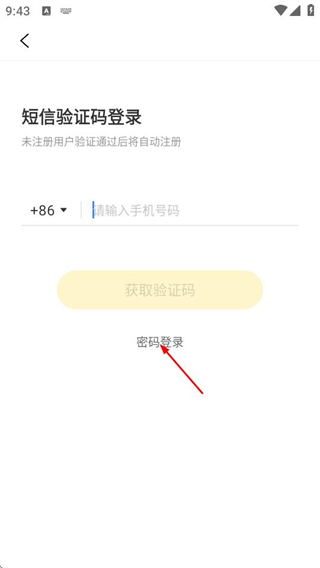 3、在短信驗證碼登錄頁面,點擊密碼登錄選項,進入密碼登錄頁面。