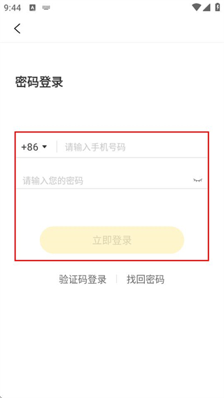 4、在密碼登錄頁面,輸入信息后點擊立即登錄按鈕,完成賬號登錄。