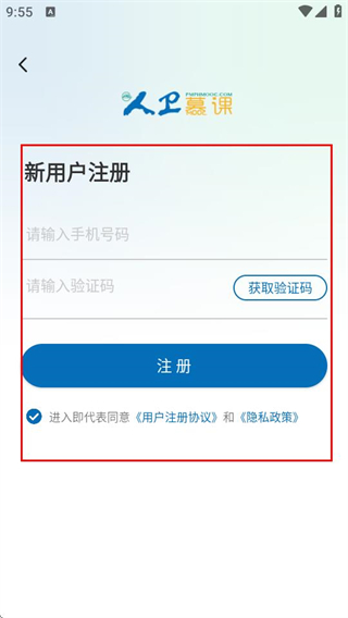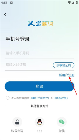 3、在手機(jī)號登錄頁面,點(diǎn)擊新用戶注冊選項(xiàng),進(jìn)入新用戶注冊頁面。