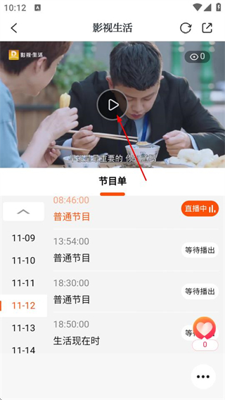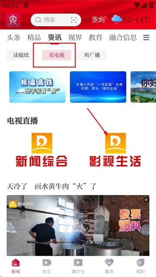 2、在資訊頁面,選擇要觀看的電視節(jié)目分類,如影視生活,進(jìn)入節(jié)目頁面。