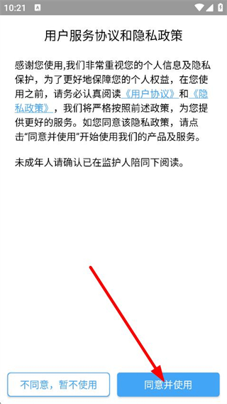 1、在用戶服務(wù)協(xié)議和隱私政策彈窗,點(diǎn)擊同意,進(jìn)入登錄頁(yè)面。
