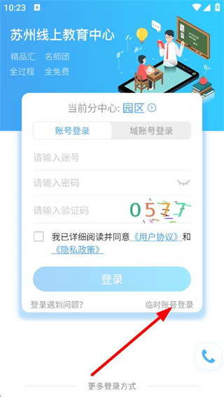 2、在登錄頁(yè)面,點(diǎn)擊臨時(shí)賬號(hào)登錄,進(jìn)入臨時(shí)賬號(hào)登錄界面。