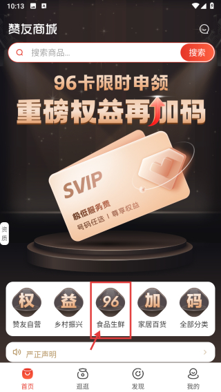1、打開電商類APP,點(diǎn)擊食品生鮮分類標(biāo)簽,進(jìn)入食品生鮮頁(yè)面。