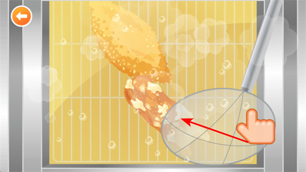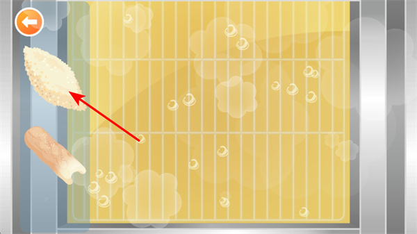 2、在炸制環(huán)節(jié),點擊裹好面包糠的食材,將其放入油鍋中,這是制作炸物的關鍵步驟,準確操作才能開始食材的炸制過程。