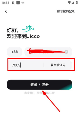 3、輸入驗證碼后點擊登錄注冊按鈕,完成登錄注冊操作。