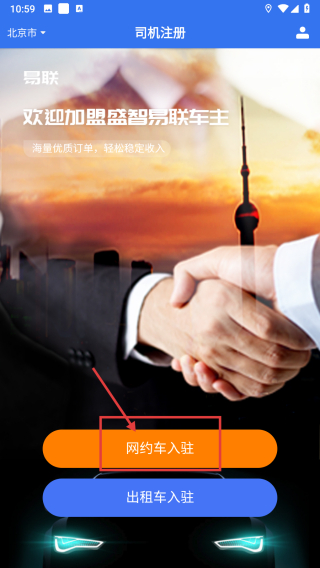 1、打開出行服務類APP,點擊網(wǎng)約車入駐選項,進入司機加盟頁面。
