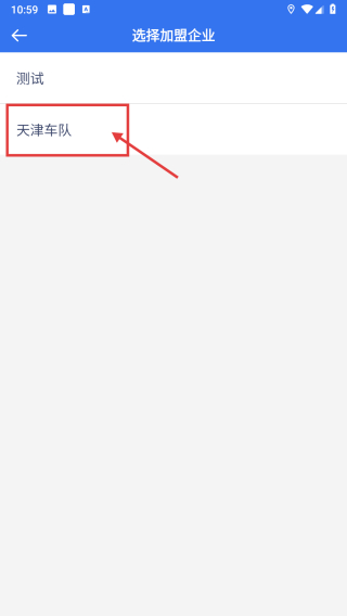 4、在選擇加盟企業(yè)頁面,選擇天津車隊,完成加盟企業(yè)選擇。