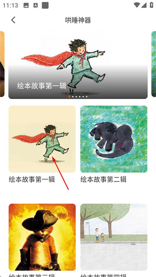 2、在哄睡神器頁面,選擇繪本故事輯,進入繪本故事列表頁面。