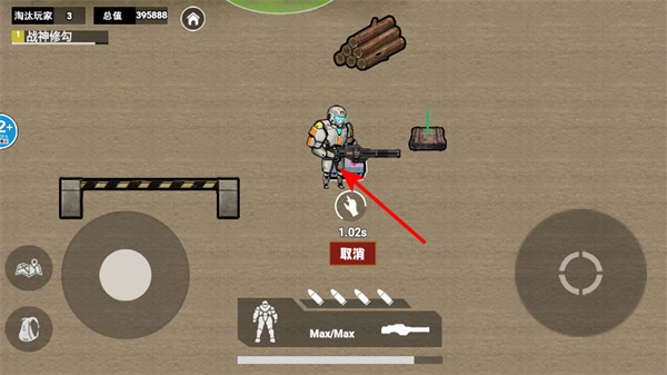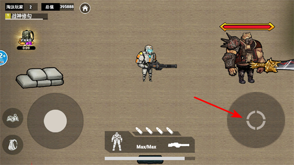2、面對(duì)大型敵人時(shí),點(diǎn)擊右側(cè)圓形攻擊按鍵發(fā)動(dòng)攻擊,持續(xù)輸出可快速削減其血量,注意躲避敵人攻擊確保自身安全。