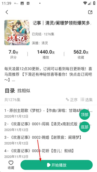 3、在小說詳情頁面,點(diǎn)擊開始播放按鈕,可收聽該小說。