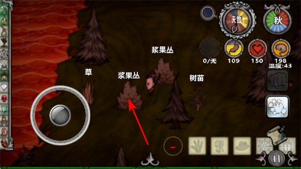 4、看到漿果叢時(shí)靠近并進(jìn)行交互采集,漿果是重要的食物來源,采集漿果可維持角色飽食度,保障生存。